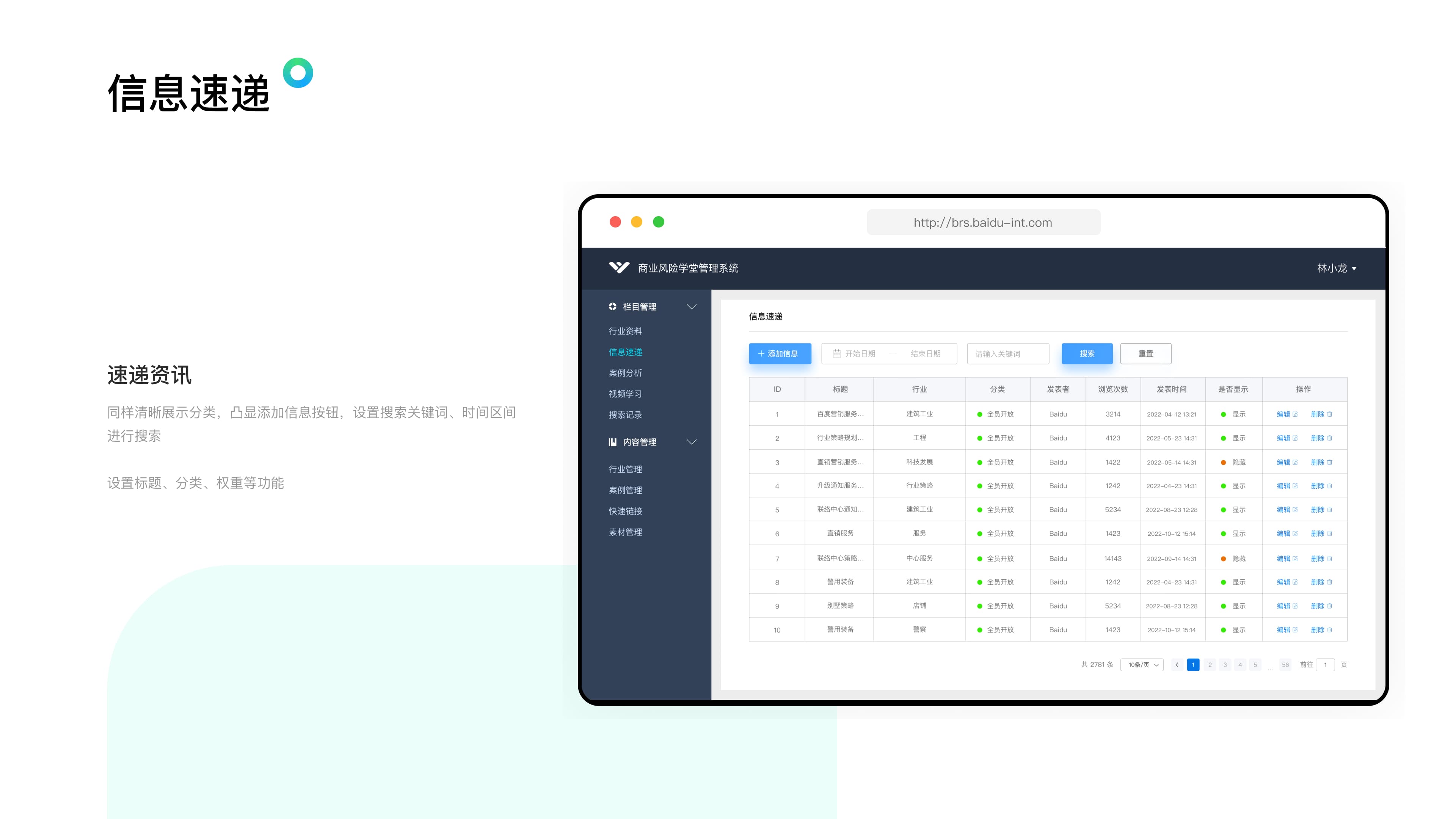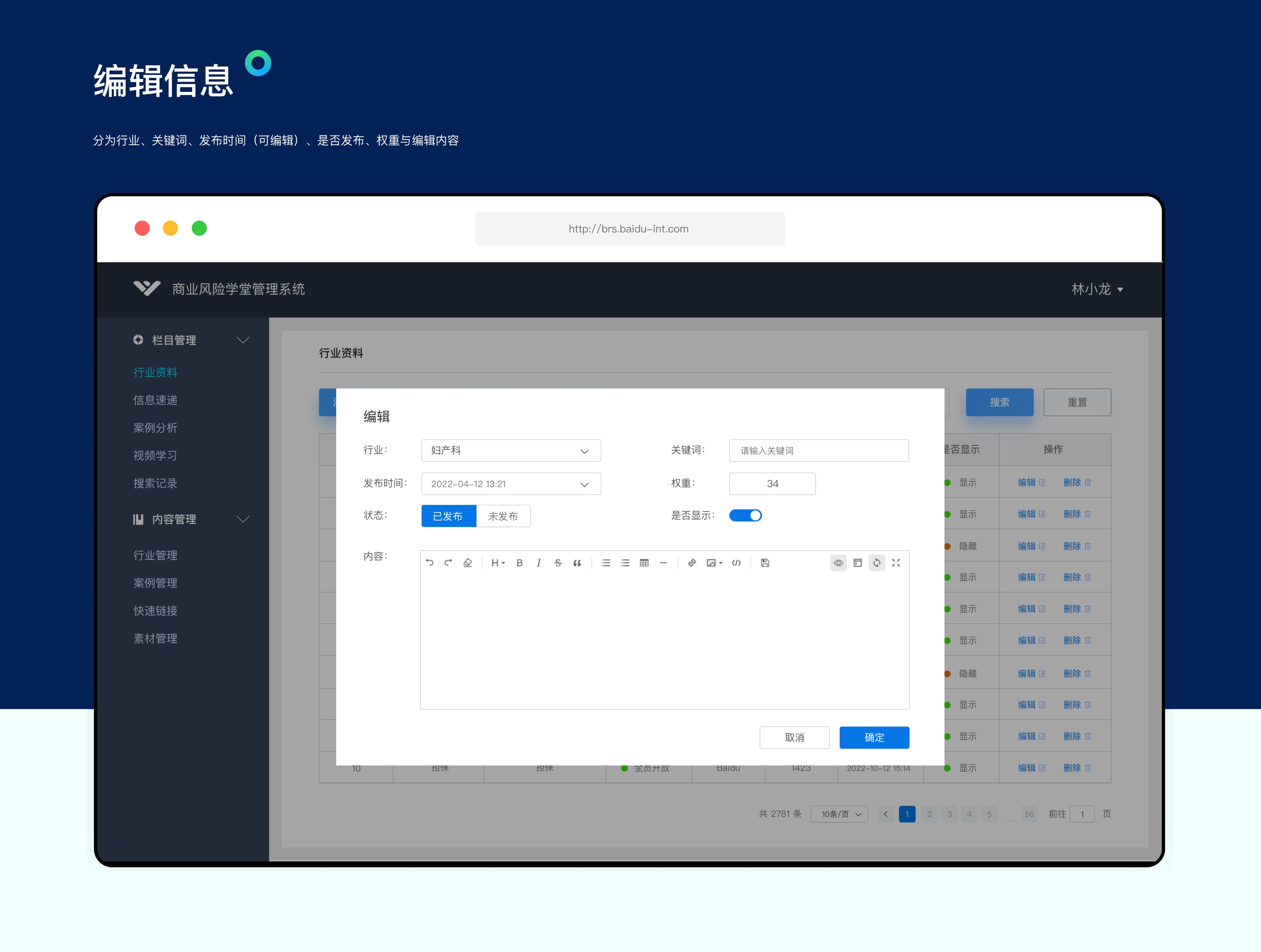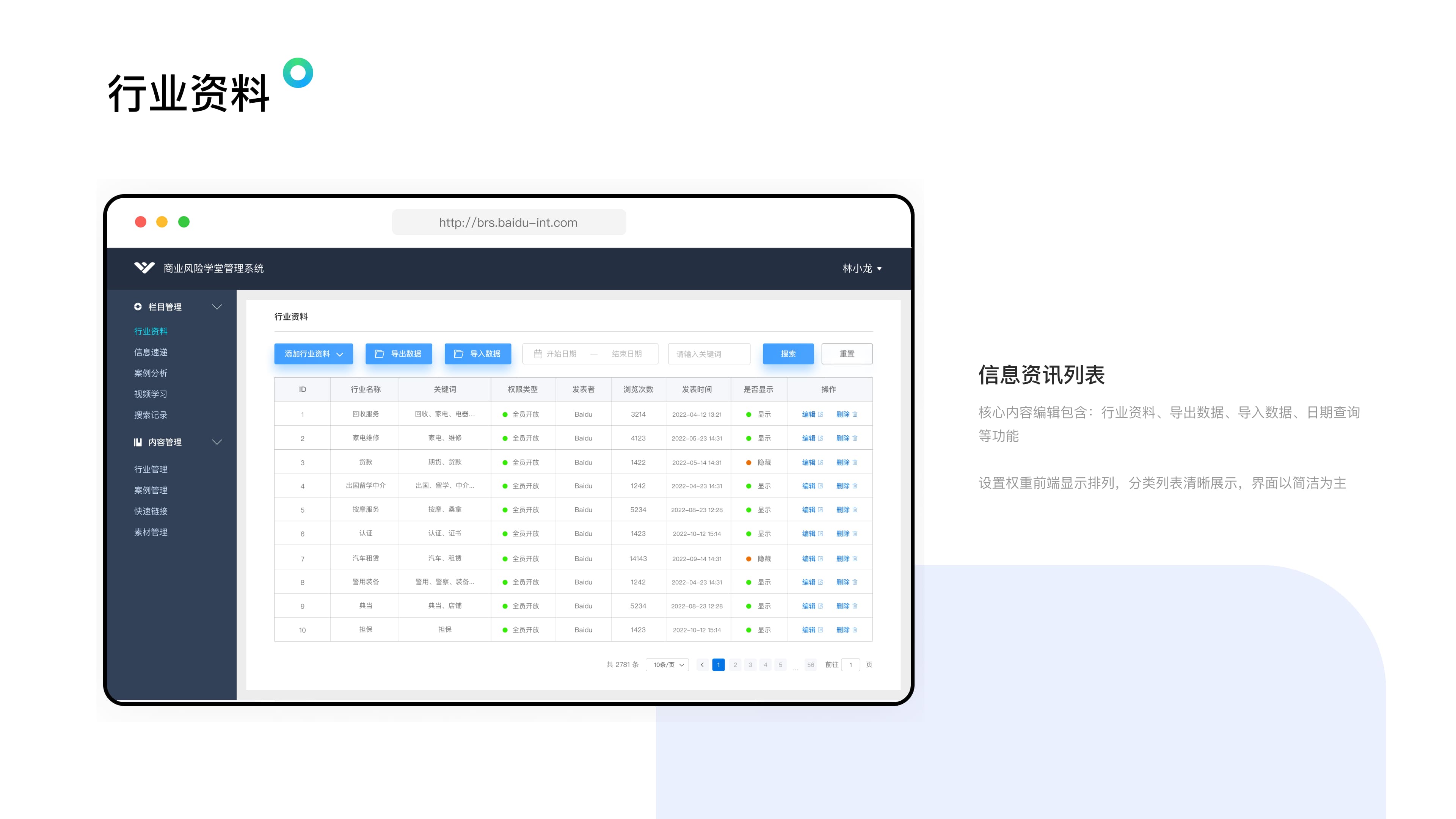为了让销售体系的业务更清晰便捷的了解新客户准入所需资质,申请搭建行业准入资质平台网站